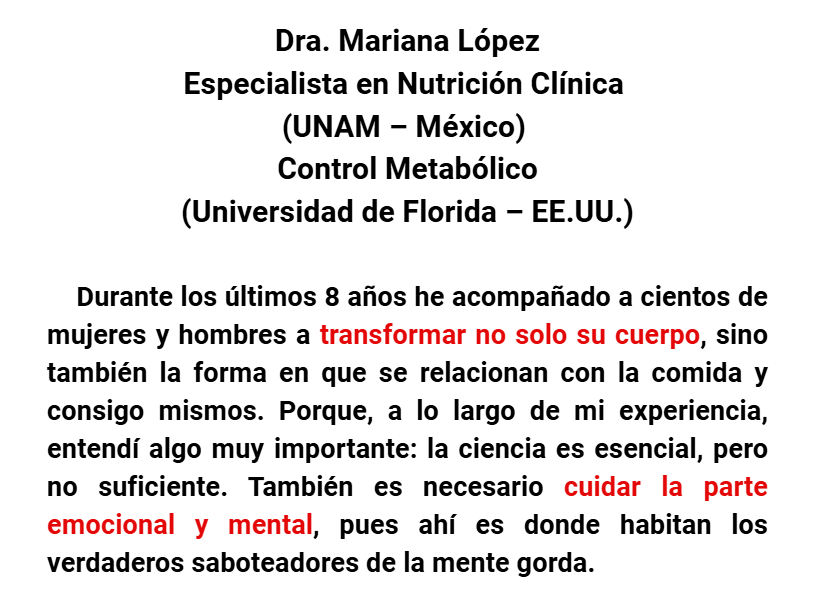 ESTO NO ES OTRA DIETA!Es la razón científica por la que finalmente vas a lograr resultados reales.